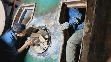 便于機械工具接觸到水垢的小型鍋爐。